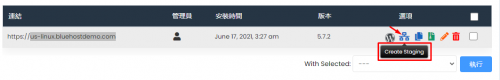 D)从需要暂存站点的列表中选择 WordPress 安装,然后单击所选安装的“Create Staging”图标