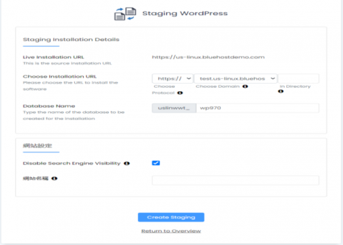 让我们看看如何创建一个 WordPress stage网站。在本文中,我们使用 us-linux.bluehostdemo.com 作为我们的实时域,将 test.us-linux.bluehostdemo.com 作为实时域的Stage网站的副本。