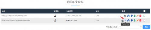 3.3)单击您已使用并希望使其上线的登台网站附近的“Push to Live”图标。