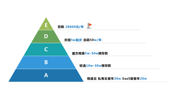 轻流的费用也不低,仅次于明道云,它的优势性在于bpm的功能比较完善。有非常丰富的解决方案供选择。并且产品的交互设计在业内是一流的,也是一个很好的卖点。轻流给予服务商的后续支持包括了宣传材料制作,技术培训等等,并且私有云的本地部署也是支持乙方替换logo和域名的。
