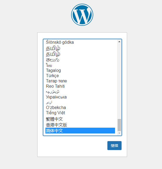 通过域名/wp-admin/install.php(直接访问IP),出现网站后台登录选择语言框;
