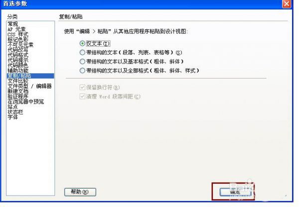 选择复制粘贴的选项,红色框框里为仅仅文本