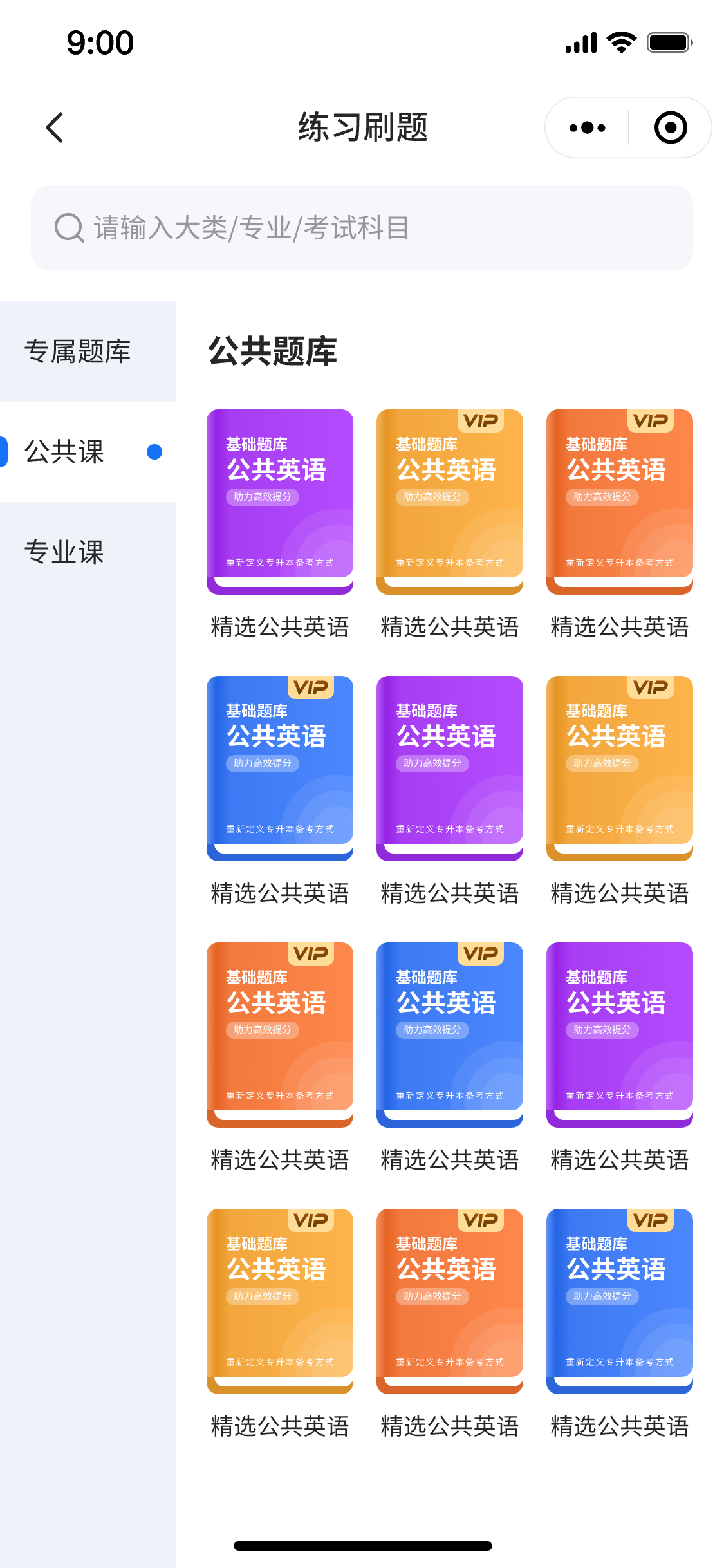 这是我们为客户开发的一套刷题小程序,支持现在模拟考试,错题收藏,自由组卷,每日一练,在线订单,支付等功能。是四川职教中职高职专科职业学校、教师、学生、企业之间的交流服务平台。