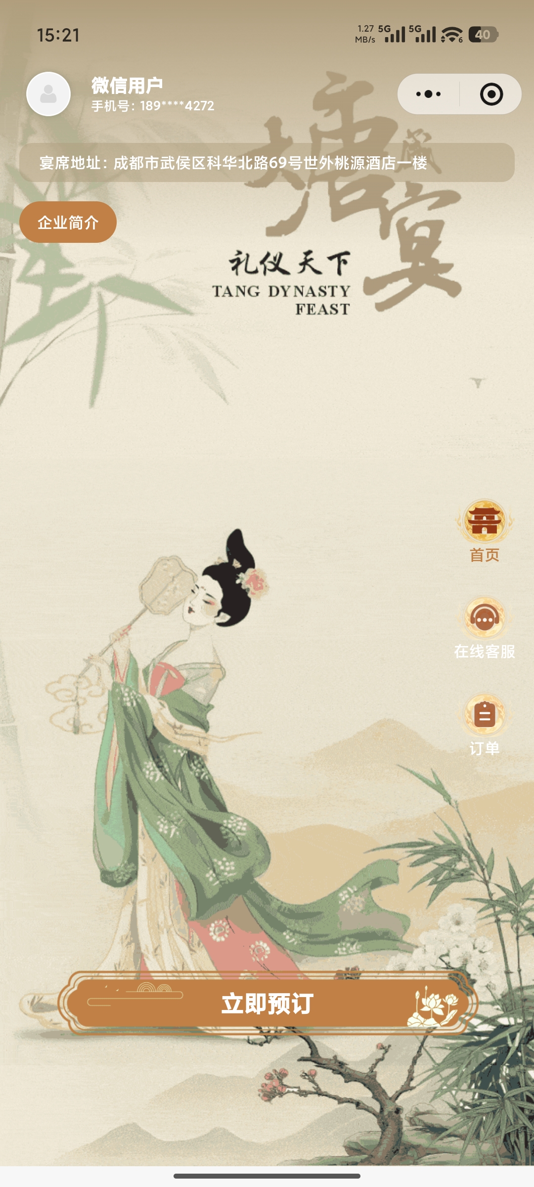 酒店在线订座、到场核销、定金支付、包间预定、订单核销、妆造摄影预约等功能。