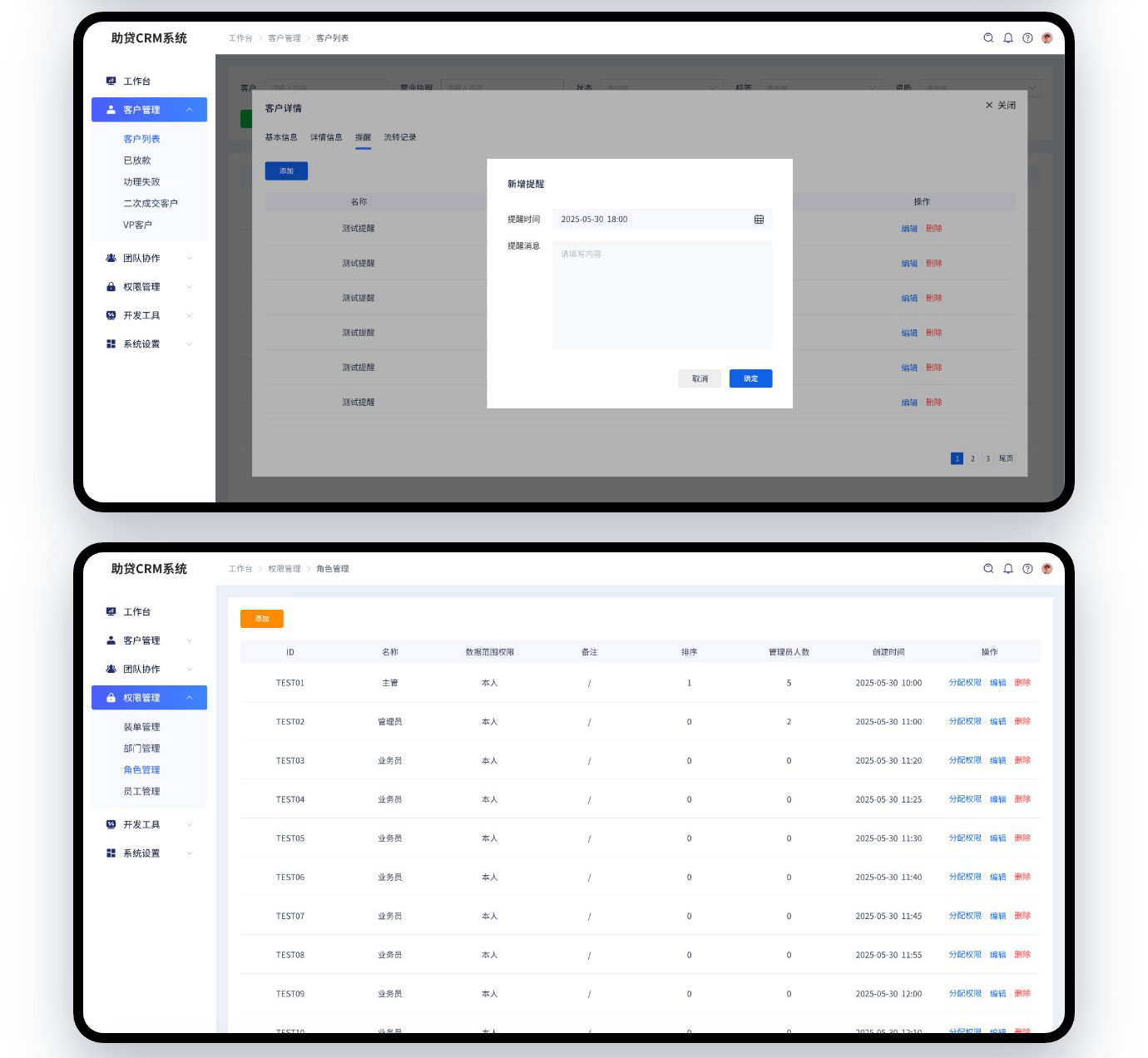 这是我们给河南一家助贷公司开发的CRM管理系统,功能也确实不复杂,定制开发也才几千块钱,客户之前使用的是传统的EXCL记录信息,但是随着数据网增加,之前的方式也不好管理了,现在业务渠道扩展有第三方API提供数据过来,所以也必须开发一套自己的系统来接收数据,那么接收了数据后又会涉及到数据的管理,干脆就把数据管理这一次一起开发了。